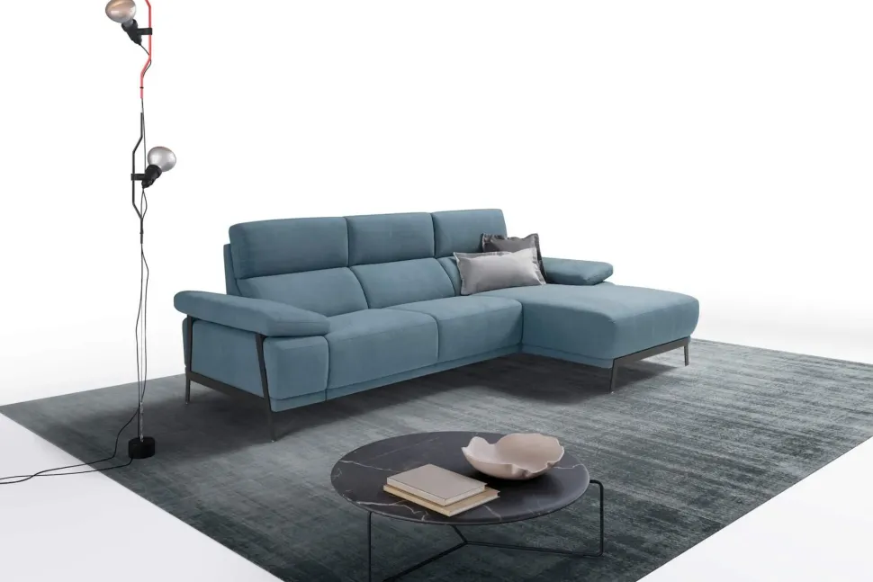 Divano due posti maxi + Chaise Longue dx, piedi in metallo col.Nero opaco H13.5cm, tessuto cat.Elegant new bronx col Jeans.
