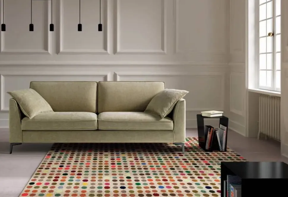 - Il soggiorno è l’area della casa dove più spesso accoglierai familiari e amici per passare qualche ora discorrendo e rilassandoti: in un soggiorno di tutto rispetto di certo non mancherà il giusto numero di posti a sedere; per cui è di primaria importanza valutare anche questo fattore prima di scegliere un imbottito: il modello qui visibile è un 2 posti.