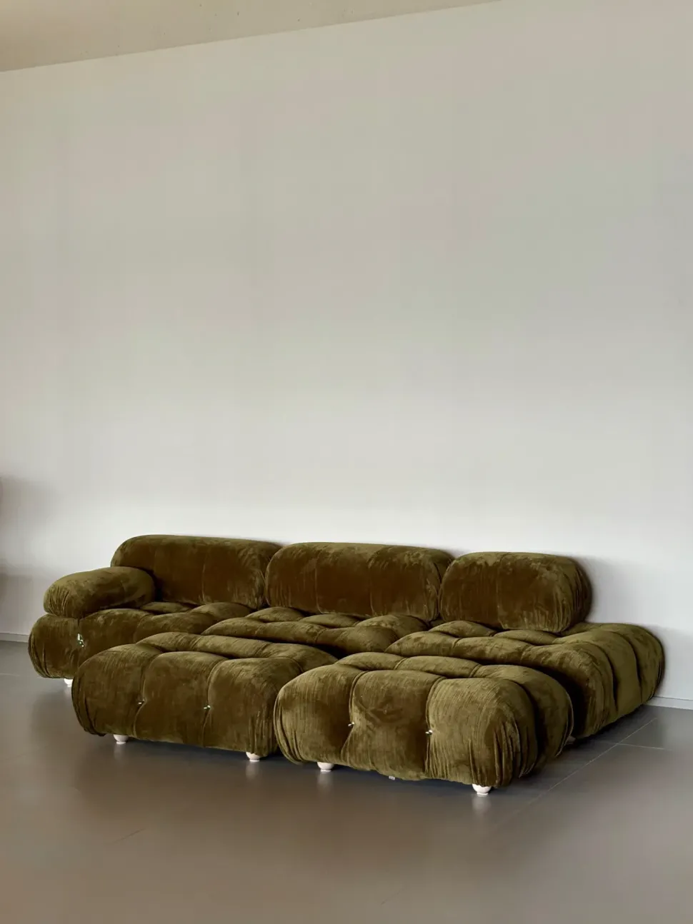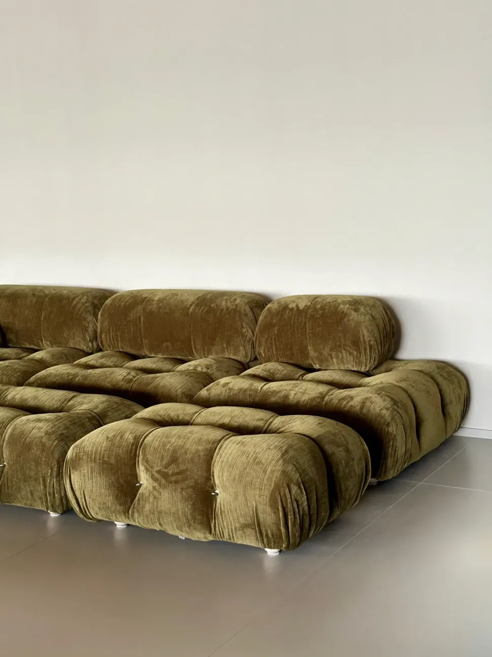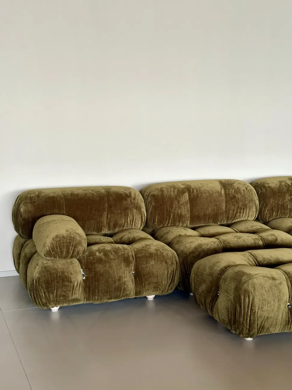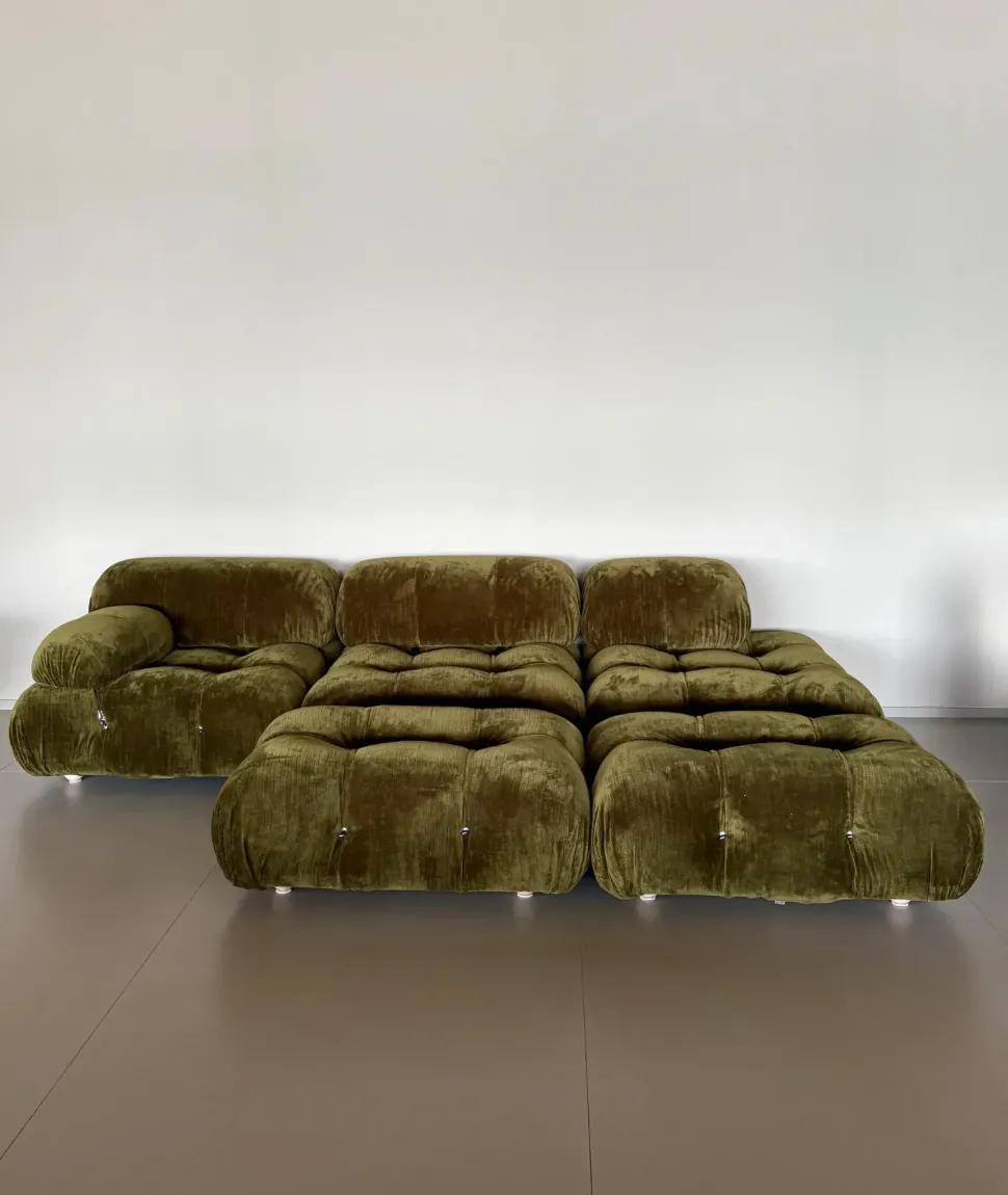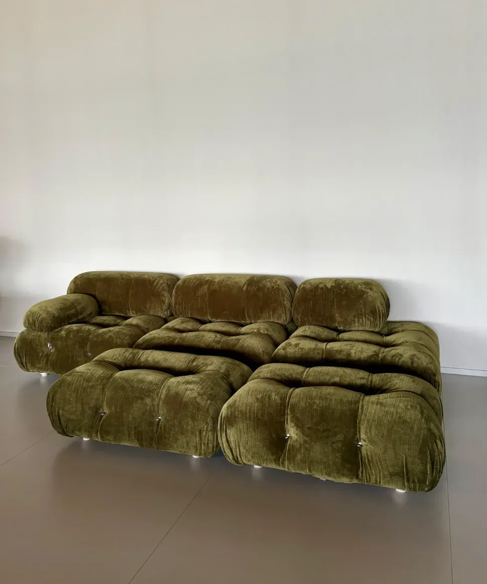 Divano mod.Camaleonda L.288 x 162 cm con 2 pouff in enia verde oliva