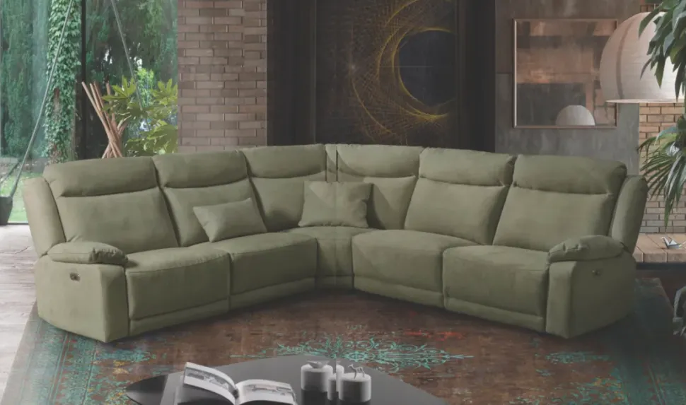 Varie misure disponibili, Continetal è un divano disponibile in tante varianti , in questa foto mostriamo un due posti con angolo aperto da cm 110×110 la seduta di destra con reclainer elettrico da cm 101 poltrona recliner maxi ,una poltrona da cm 81 senza braccioli, angolo da cm 110×110 ,una poltrona da cm 81 senza braccioli e una poltrona maxi da cm 101 non reclainer con bracciolo..