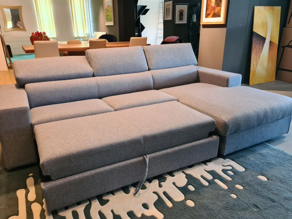 - Al fine di ottimizzare lo spazio nel soggiorno, è bene scegliere gli arredi secondo conformazione e metratura delle stanze, selezionando perciò anche la tipologia di imbottito che fa al caso tuo tra divani, poltrone, divani letto e tanto altro; il modello presente in foto fa parte della collezione di divani con penisola di grande valore firmati dal marchio.