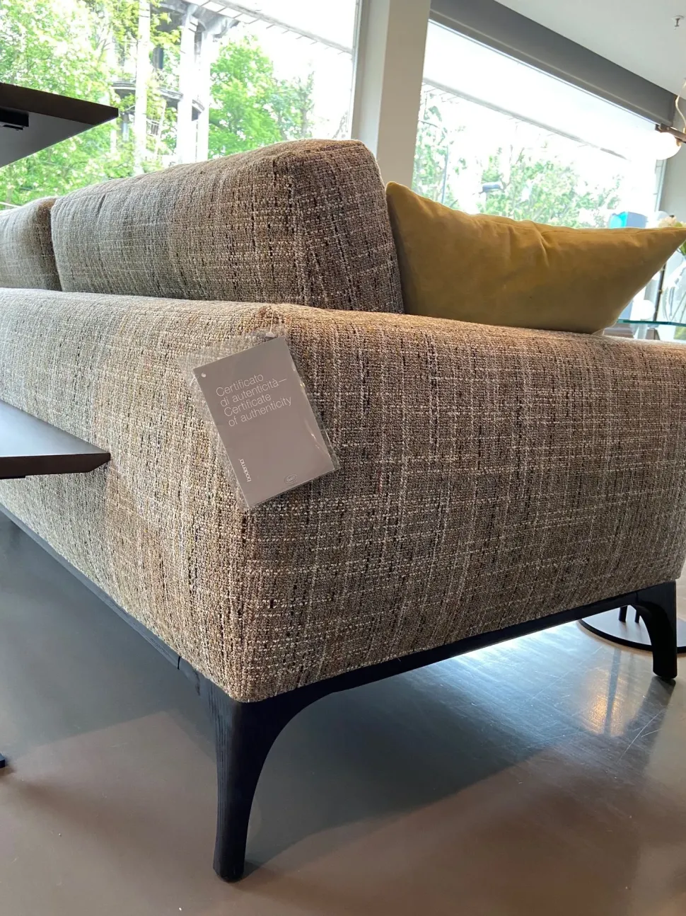 Il divano Milano di Bodema è realizzato con basamento portante in legno tinto Wengè.