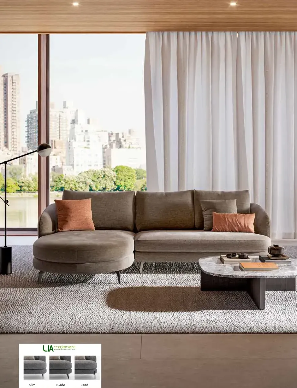 Divano Jand di Le Comfort: (289 x 176 cm) ricrea uno spazio accogliente e confortevole in spazi moderni di grande personalità. Se desideri imbottiti con penisola come il modello nell’immagine, caratterizzato dai volumi che invitano a goderti i tuoi momenti di relax..Piedini di serie mod. Slim . Disponibile in varie colorazioni di tessuto completamente sfoderabile. Costo calcolato con un tessuto in cat. B
