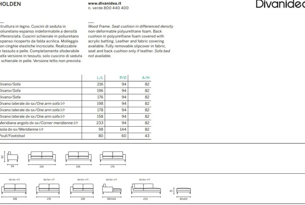- L’imbottitura di Holden è in poliuretano di grande valore, capace di fondere insieme la tipica morbidezza con la resistenza del materiale negli anni al prolungato utilizzo.