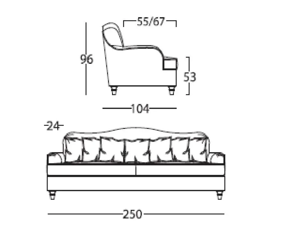 I pezzi di arredo sono da scegliere con attenzione non solo per le finiture con cui sono stati costruiti, ma altresì per le dimensioni e lo spazio che occupano nei locali domestici: il modello qui visibile fa parte della fascia di imbottiti che vanno da 226 a 250 cm.