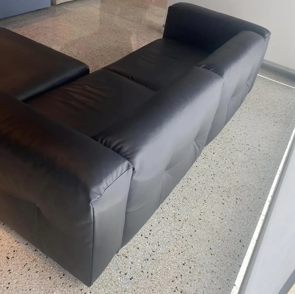 POUF IN PELLE NERA 95 X 95 ALTEZZA 38 CM