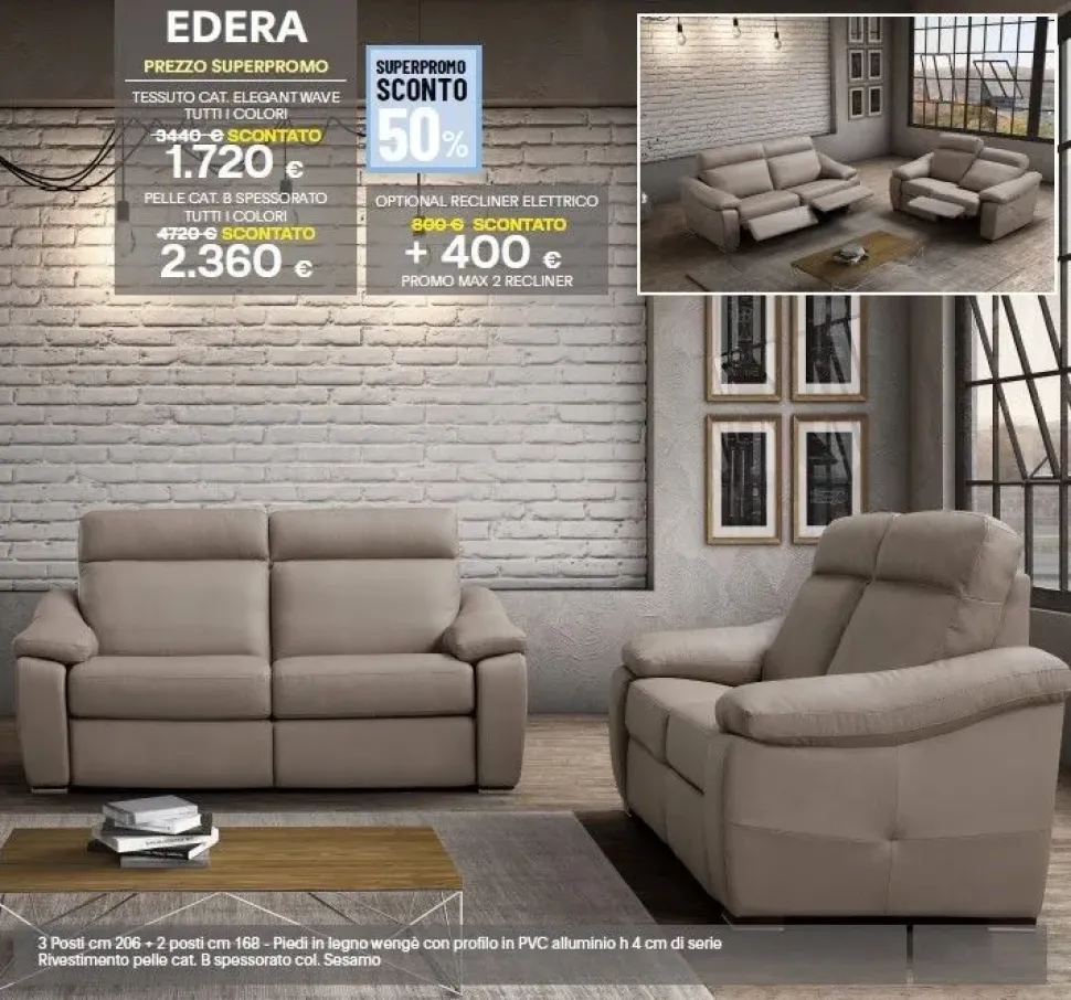 Gli elementi da posizionare nel living vanno scelti cosicché possano garantire il comfort indispensabile al nostro riposo. Gli imbottiti, come questo modello Edera ad un prezzo imperdibile, sono capaci di personalizzare i locali interni per merito della qualità di rivestimenti e materiali.