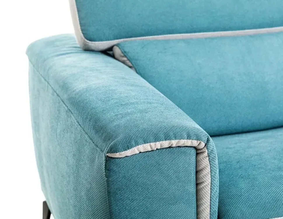 Struttura: Telaio in legno con parti in multistrato essiccato di 18 mm, agglomerato di legno da 18 mm, tamponature in fibra di legno 2,5 mm. Parti portanti in legno massello di vari spessori. Il tutto rivestito da ovatta di poliestere accoppiata a vellutino velcrabile da 200 gr. Molleggio: realizzato mediante nastri elastici incrociati da 120 mm, composti da fili di gomma di derivazione naturale, ricoperti da nylon avvolto a spirale. Imbottitura: Cuscino seduta in poliuretano espanso in D28 indeformabile, rivestito in resinato di poliestere da 200 gr. Cuscini poggiatesta in poliuretano espanso flessibile in densità variabile da 28 a 28 ss rivestito in resinato di poliestere da 200+200 gr, poggiareni in poliuretano espanso D23S rivestito in resinato di poliestere accoppiato da 200 gr, cuscini braccioli in poliuretano espanso D30 indeformabile rivestito in falda di poliestere accoppiato da 380 gr. Appoggia Testa Meccanismi: In lega di metallo a microscatti da 0 a 90°, per un totale di 30 scatti. Piedi: Piedini di trasporto in plastica, removibili per applicare i piedini di finitura. Piedini di finitura a scelta a seconda dell’ordine e delle opzioni richieste. Rivestimento: Completamente sfoderabile.Misura divano Larghezza cm. 240 penisola da cm 170 cm. Altezza da 70 a 1’7 cm. altezza seduta cm 45 altezza bracciolo cm 68, altezza piedino 13 cm. , profondità 113 cm. , profondità seduta cm 55. , con la categoria Pro vi abbiamo realizzato questo divano con una vasta gamma di colori idrorepellente, peso del divano 110 kg. fai la richiesta tessuti colore.