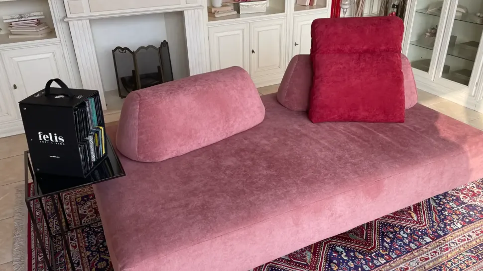 Divano Felis design alta qualit made in italy seduta L 219 P 128 H 44 cm con piedi vetro , completamente sfoderabile 2 ccuscini bassi