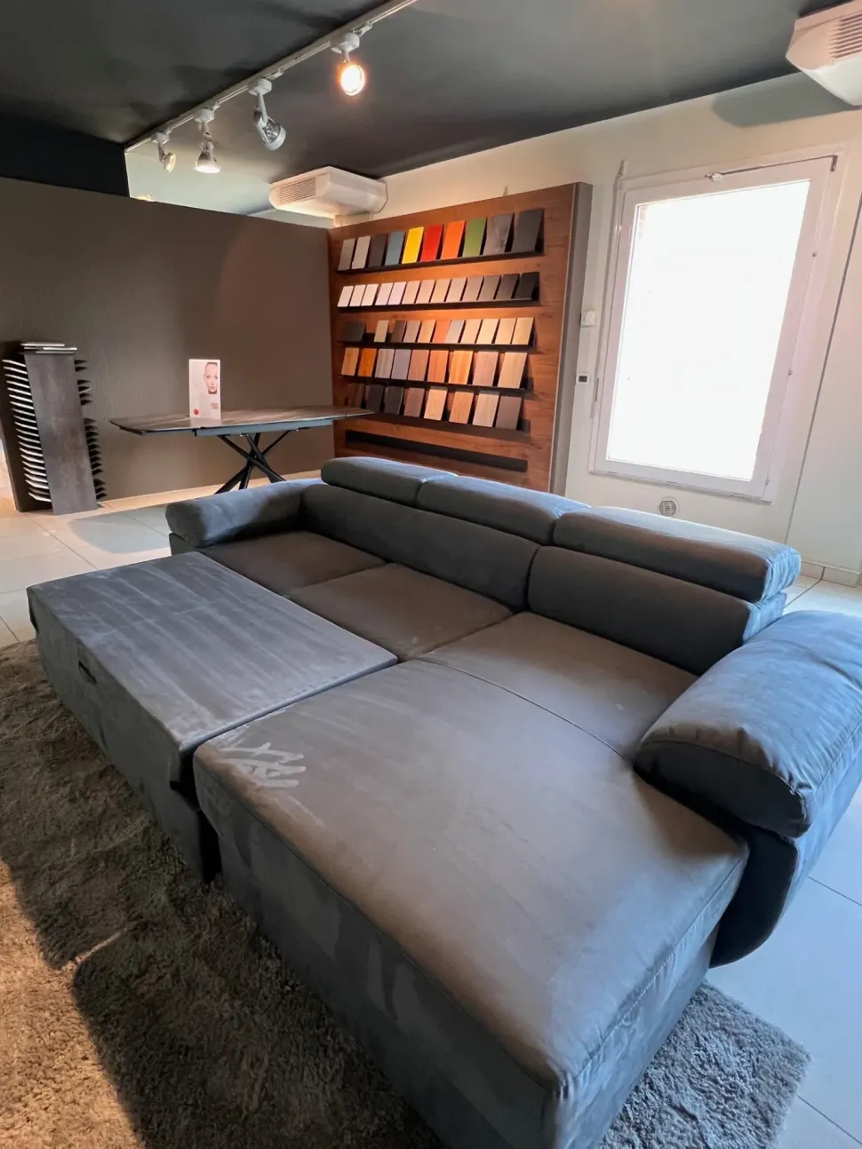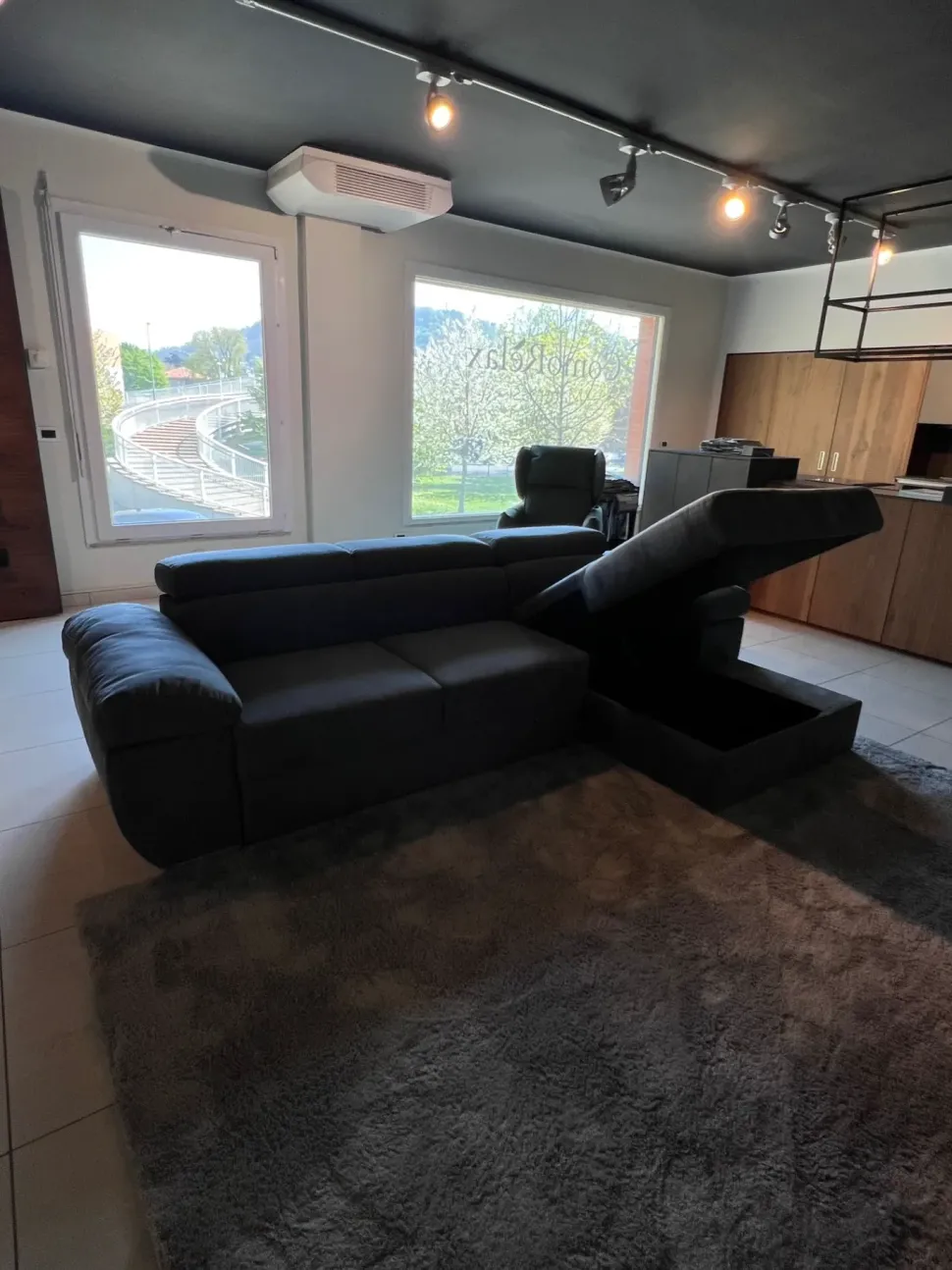 Divano nuovo con penisola + contenitore + panchetta estraibile Colore grigio come da foto.