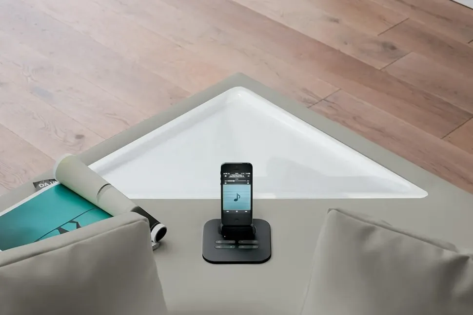 Ordinando il modello JAMES nuovo è possibile scegliere, oltre alle dimensioni desiderate ed il rivestimento, la versione con le sedute fisse e/o il sistema Hi-Fi dotato di casse + sub-woofer integrati e con la dock-station con la quale collegare vari dispositivi dai con i quali trasmettere la propria musica preferita.