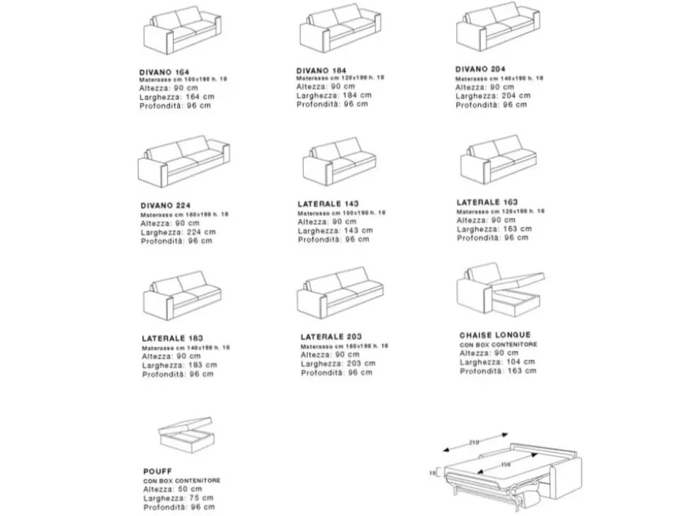- I mobili, tra cui pure gli imbottiti, non devono mai essere d’ingombro, prima di tutto per quanto riguarda lo spazio che impegnano all’interno dei locali; proprio per questo è così rilevante valutare con attenzione anche le loro misure: il modello di Divano letto presente in foto appartiene alla linea di imbotti della firma di lunghezza che varia da 201 a 225 cm ed è quindi ideale per un ambiente di molteplici volumetrie.