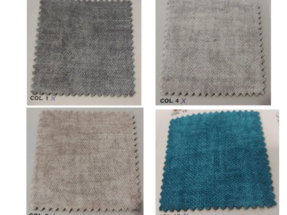 Rivestimento in tessuto idrorepellente e antimacchia colori a scelta, struttura in legno e imbottitura in poliuretano espanso.
