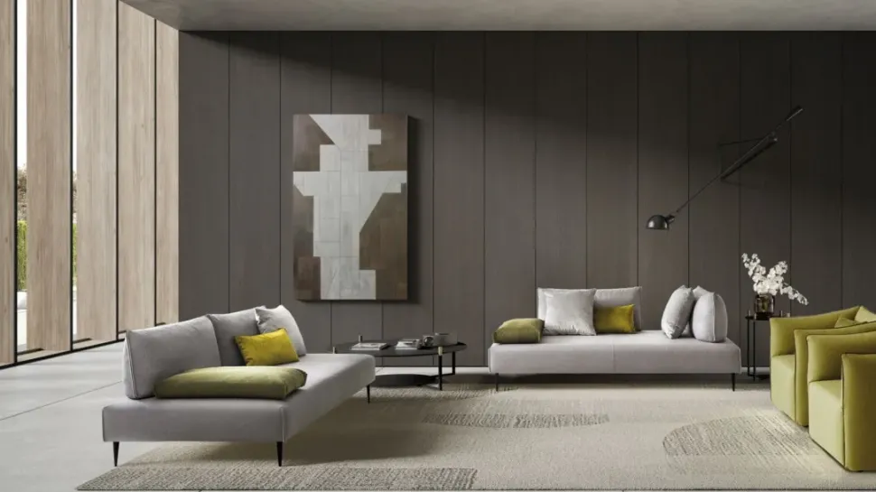 Tutta la dolcezza di un bacio è sprigionata dalle aggraziate linee di questo divano sfoderabile che fa della libertà strutturale il suo punto di forza. Liberi sono infatti gli schienali, posizionabili a piacere, assecondando i propri gusti; libere sono anche le direzioni compositive e soprattutto le scelte cromatiche, aperte a un originale ventaglio di possibilità. Se amore per l’arredo è prima di tutto libertà nella realizzazione del proprio stile, Bacio non può che essere il fondamentale punto di partenza.