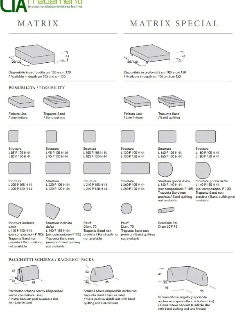 Vi presentiamo il divano Matrix Special , composto da 1 struttura da cm. 180×105 + 1 struttura inclinata da cm. 140×140 + 1 pouff rotondo da cm . 100 + 3 schienali Move , cuscini arredo esclusi. piedini modello ODD come da foto . Il costo si riferisce alla categoria A .