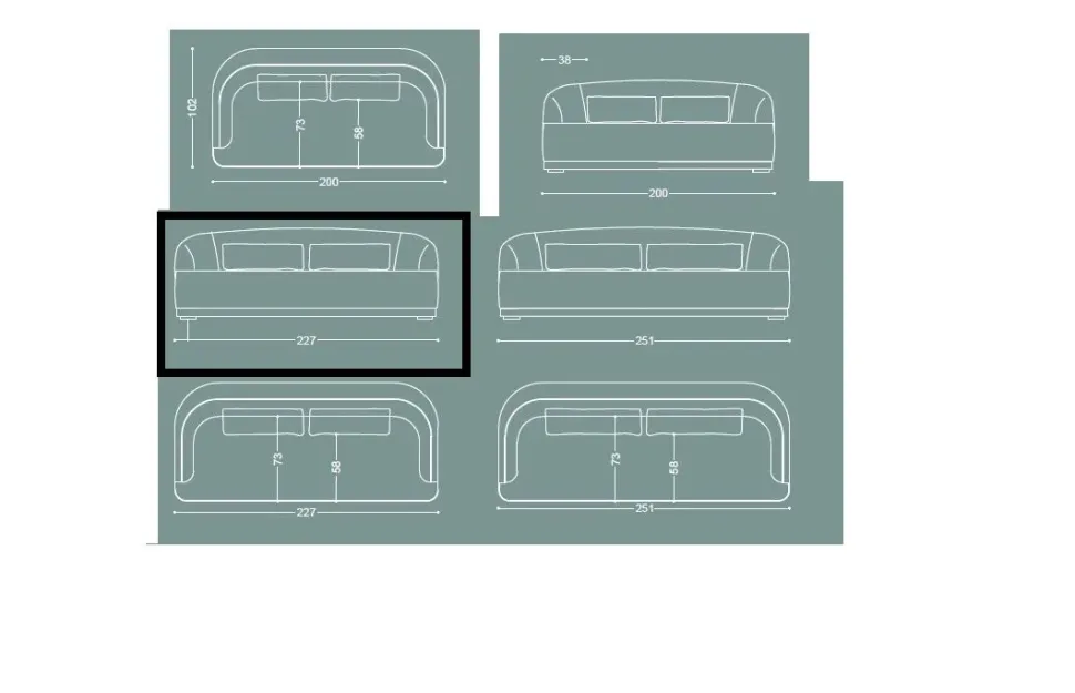 STRUTTURA IN LEGNO MASSELLO CON TRIPLA CINGHIATURA INTERNA AD INCROCIO, GOMMA INDEFORMABILE CON STRATI DI MEMORY PER GARANTIRE ANCHE DOPO TEMPO UNA SEDUTA ECCELLENTE . VOLENDO è DISPONIBILE LA MISURA PIU PICCOLA DA 200 CM O DA 251 CM