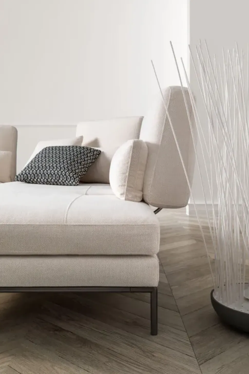 Con lo scopo di organizzare al meglio lo spazio nel soggiorno, è necessario scegliere gli arredi secondo forma e dimensione degli ambienti, valutando quindi anche la tipologia di imbottito che fa per te tra divani, poltrone, divani letto e molto altro; il modello visibile in foto fa parte della serie di con penisola di qualità eccellente firmati dal marchio.