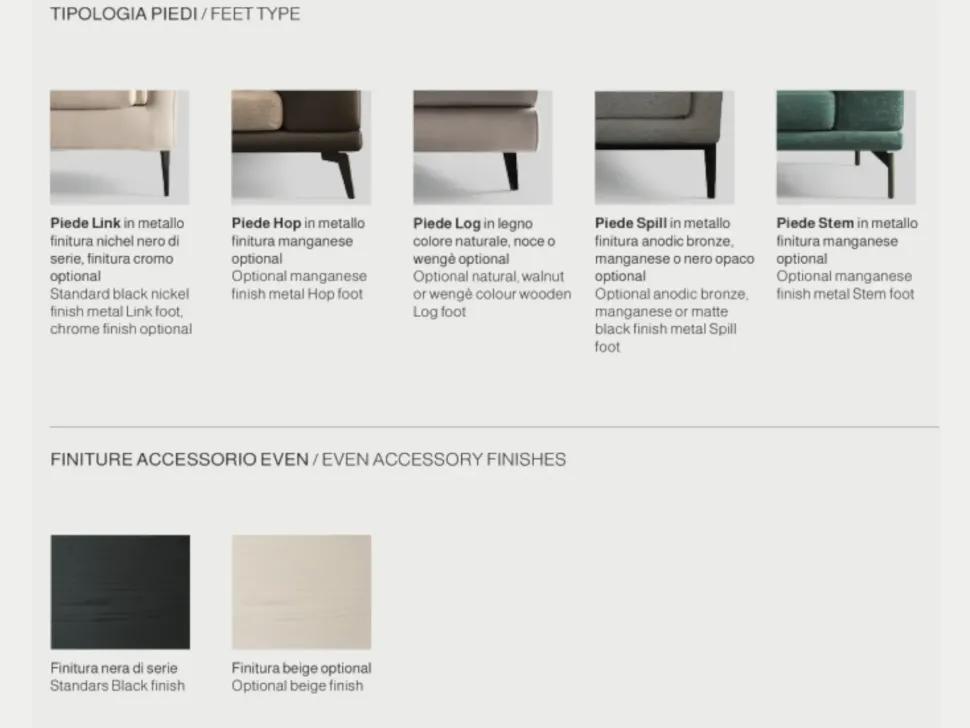 - Piedi di serie modello LINK di serie H.14cm. VEDI SCHEDA TECNICA.