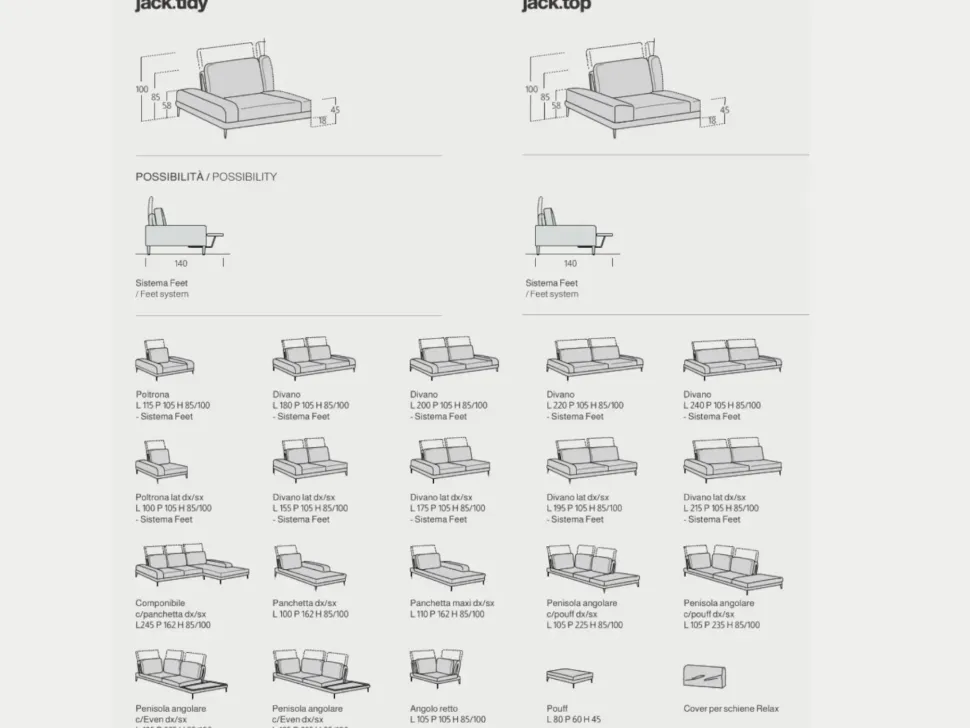 - Il prezzo esposto è relativo al divano mod. Jack come in foto, nuovo da produrre di cm 300×225 con tessuti a scelta in categoria A.