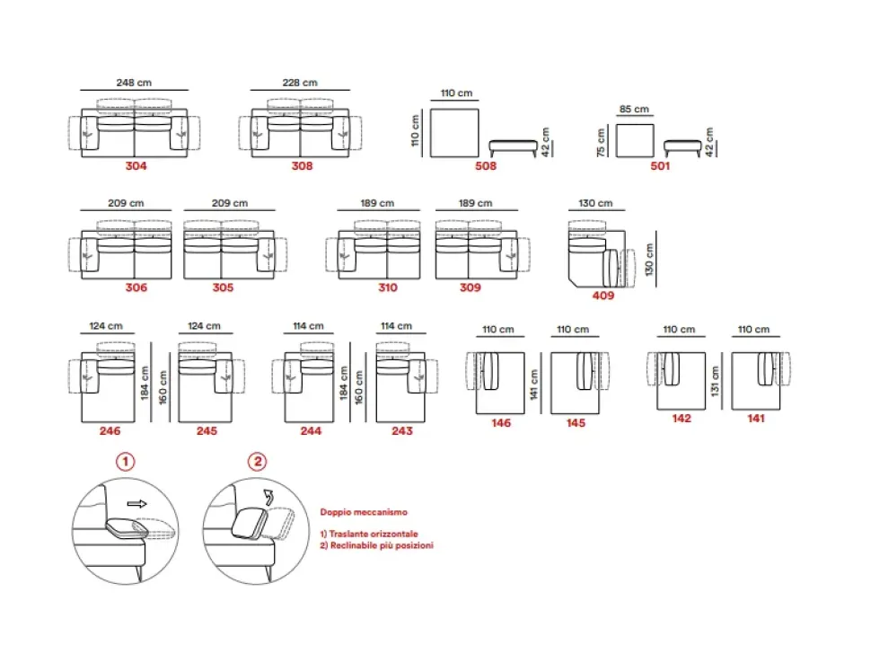 Disponibile in diverse composizioni con rivestimento sia in pelle che in tessuto.