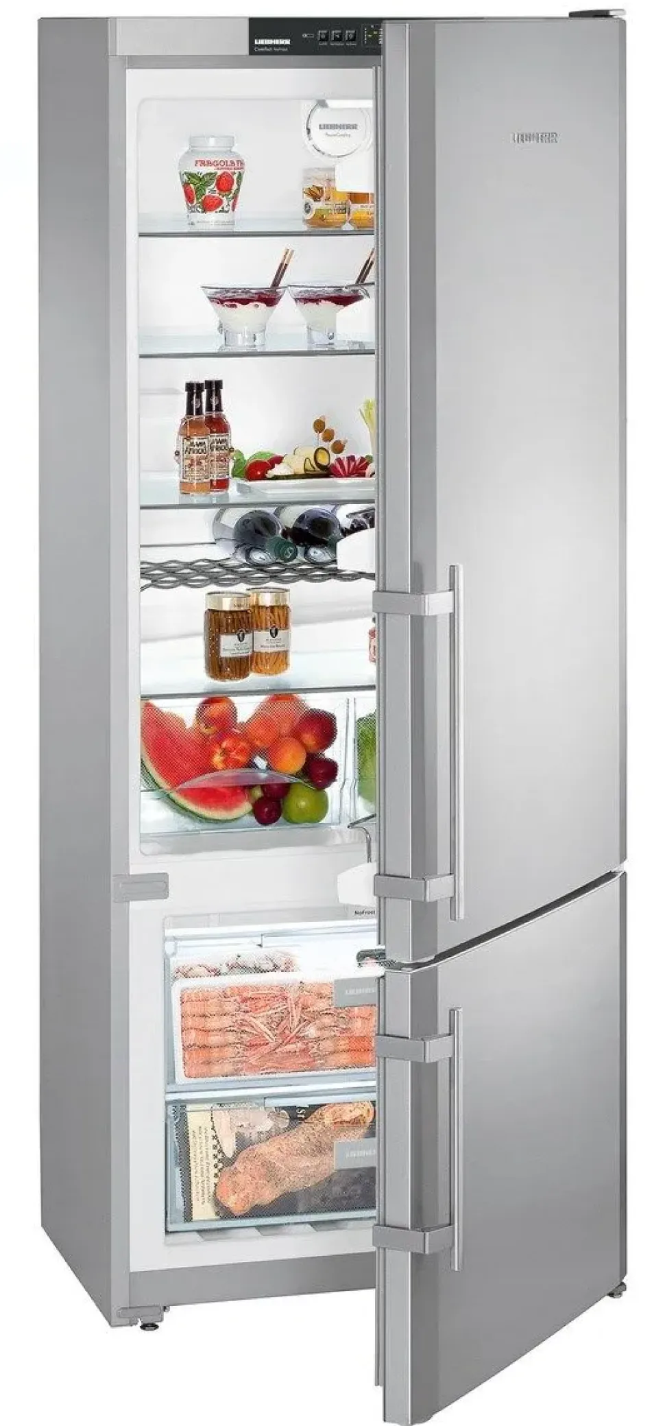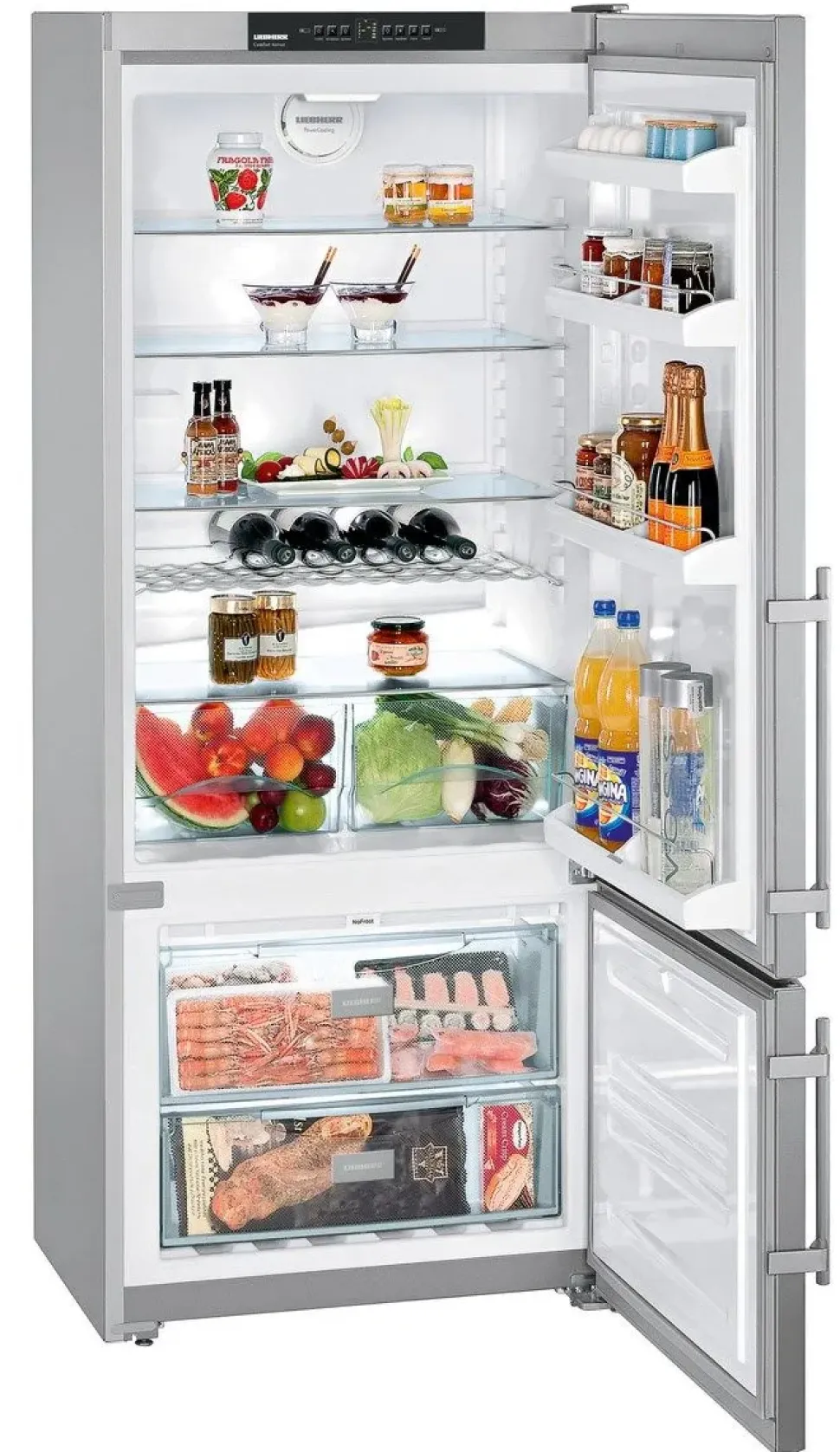 Gli apparecchi NoFrost Liebherr offrono una potenza di raffreddamento professionale per conservare gli alimenti a lungo ed in modo sicuro. I cibi vengono congelati con aria di ricircolo raffreddata e l’umidità viene portata all’esterno. In tal modo nel vano congelatore non si forma mai ghiaccio e gli alimenti non si coprono più di brina. Grazie a NoFrost sbrinare appartiene al passato.