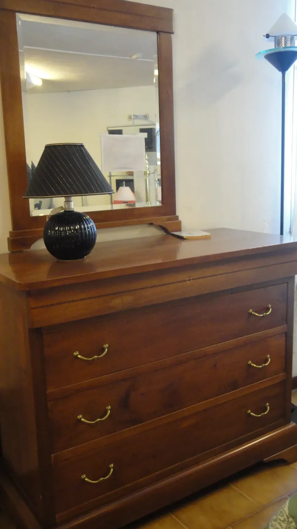 Il gruppo letto è in noce massello , completo di 2 comodini , uno specchio e comò.