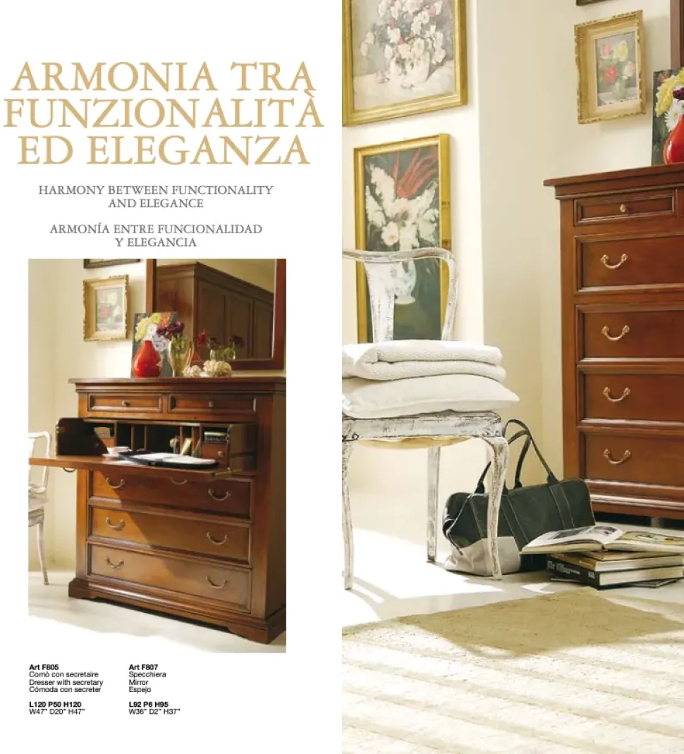 Gruppo notte Comò con secretaire f805 Falegnameria italiana in Legno in Offerta Outlet