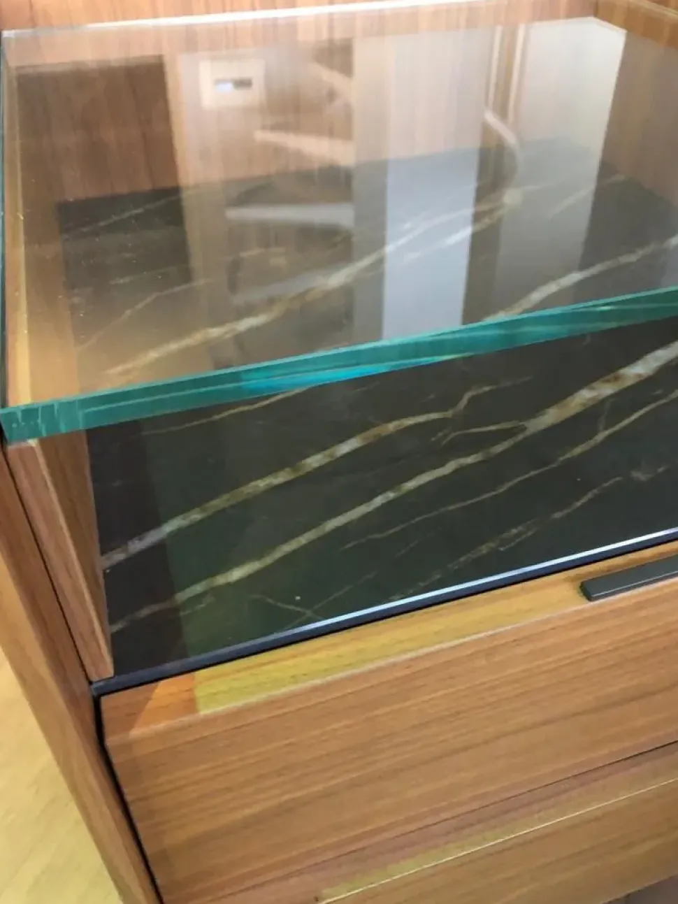 • Top: Ceramica effetto marmo Noir Desir opaco / Vetro extra-trasparente spessore 1,2cm