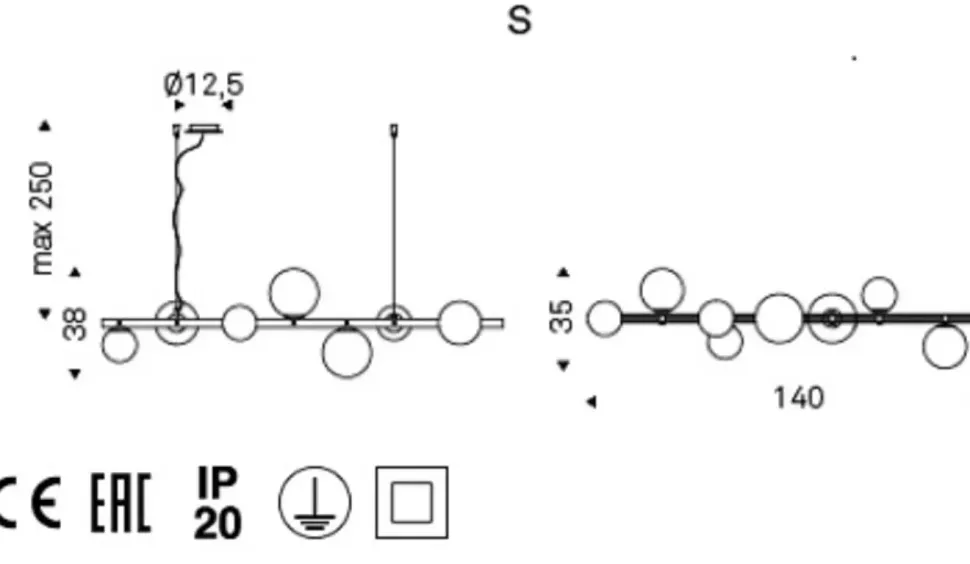 S: 7 lampadine led 2W 220lm 3000K (220V)