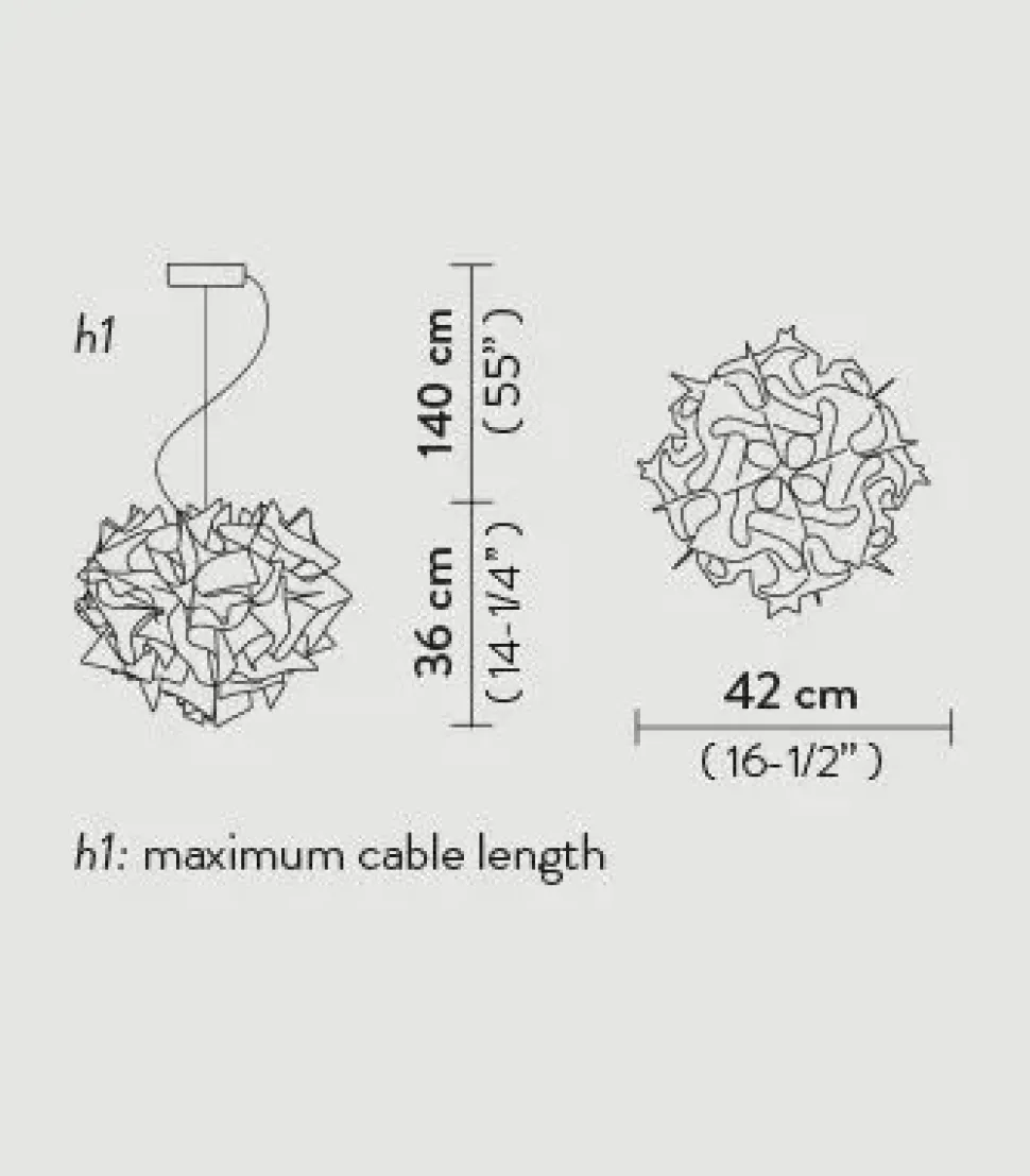 TAGLIA: Ø 42 cm x h. 36 cm / Ø 16-1/2” x h. 14-1/4” maximum cable length: 140 cm / 55”