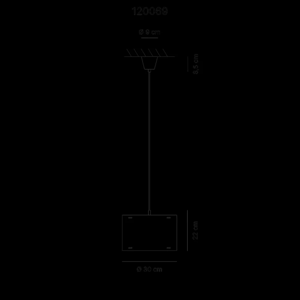 Dimensioni: Diametro paralume 30 cm. Altezza paralume 22 cm. Altezza totale max 120 cm.