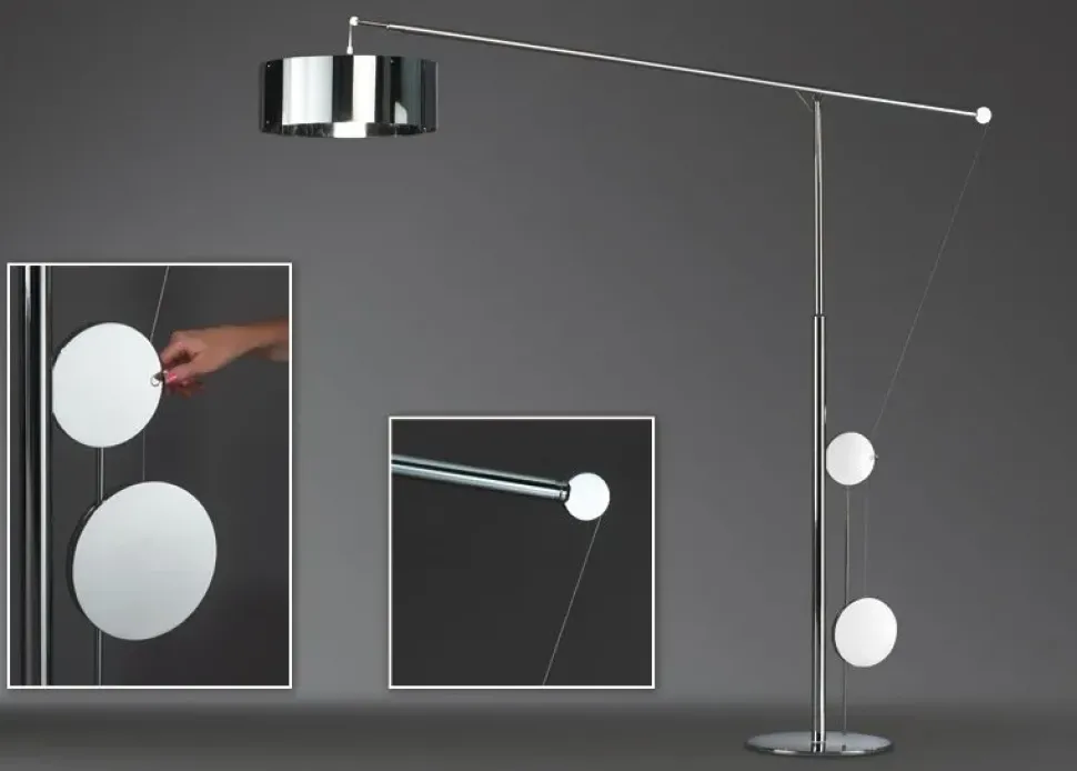 - Poiché gli ambienti domestici devono essere organizzati con una precisa logica, in modo che i mobili, tra cui anche l’illuminazione, ottimizzino lo spazio senza essere d’ingombro, il brand ha ideato una vasta scelta di modelli di lampade, piantane e da tavolo, a sospensione nonché paretali; il modello qui presente è uno splendido esempio di lampada da terra firmata dal brand.