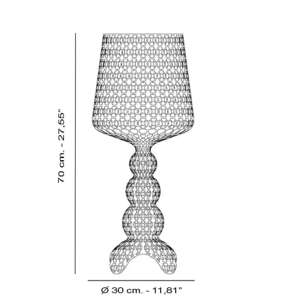 La lampada da tavolo Kabuki di Kartell segna una nuova era nel mondo dell illuminazione. La sofisticata tecnologia a iniezione della lampada Kabuki consente di avere una struttura a trama che riproduce il pizzo. Un prodotto totalmente industriale e in materiale plastico, ma che a prima vista meraviglia per il pregio della lavorazione che sembra frutto di una sapiente artigianalità. Dalla particolare superficie traforata si diffonde una luce seducente e d impatto, che esalta le curve sinuose di Kabuki. La silhouette di questa lampada è un omaggio allo stile neo-barocco. Inoltre è dotato di Dimmer per variare l’intensità di luce in base alle esigenze. Materiale: Termoplastico tecnopolimero. Finitura: Trasparente Dimensioni: Altezza 70 cm, Diametro 30 cm. Led integrato 8,4w – 2700°k. Tasse e trasporto inclusi. Disponibilità momentanea: N. 2 pezzi. Hai trovato un prezzo migliore? Contattaci al numero telefonico indicato nella mappa e scopri lo SCONTO a te riservato!
