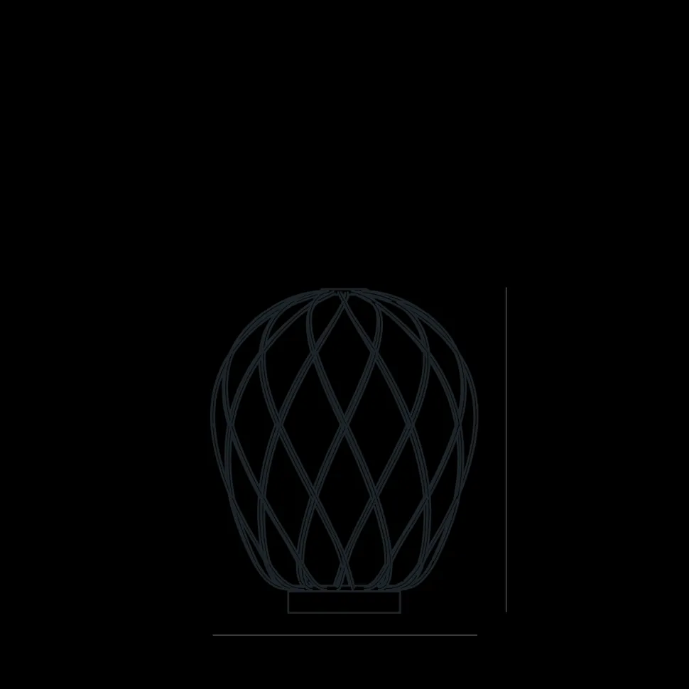 Pinecone è una lampada da sospensione e da appoggio, caratterizzata da un diffusore prodotto mediante l’antica tecnica del vetro soffiato ingabbiato: il maestro vetraio soffia a bocca la bolla vitrea entro una gabbia metallica, che ne contiene la naturale espansione solo in parte. In questo modo il manufatto finale viene in parte trattenuto dalla gabbia e in parte vi sfugge, creando un gioco di tensione che genera un oggetto sospeso nell’atto di fuoriuscire dal proprio vincolo; la gabbia viene ulteriormente impreziosita da un trattamento galvanico che ne esalta l’aspetto rendendola lucida e brillante. La versione trasparente, in particolare, permette all’osservatore di leggere un doppio livello di struttura, moltiplicando l’effetto scenografico, e l’intreccio del cesto metallico proietta sulle superfici circostanti un caleidoscopico gioco d’ombre. Al contrario, la versione bianca segue delicatamente la gabbia e ne sottolinea le geometrie generando una luce diffusa elegante e piacevole. Si tratta di un apparecchio luminoso altamente suggestivo e di forte impatto sia da spento che da acceso.
