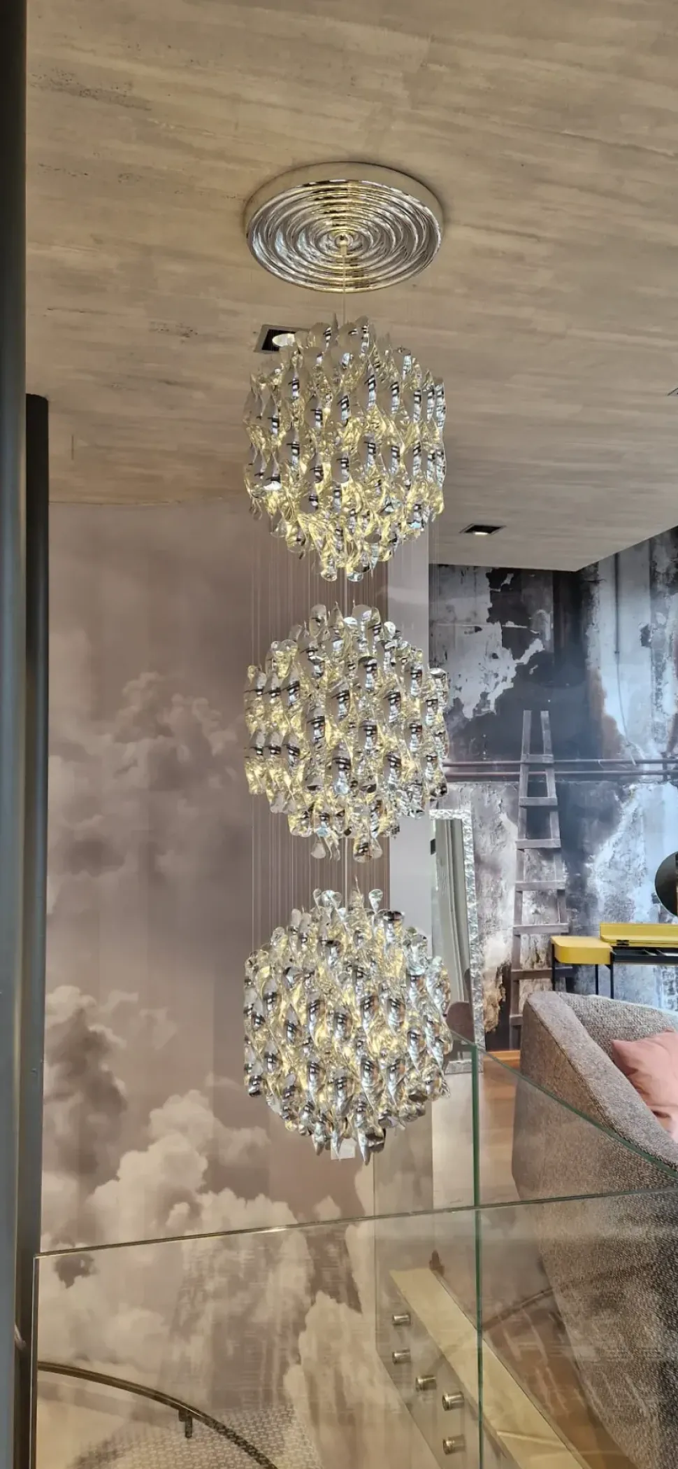 Nata da un’idea del designer scandinavo Verner Panton nel 1969 Spiral SP3 Silver è una lampada da soffitto a sospensione XL con tre gruppi di spirali argentate. La collezione Spiral non è solo un ottimo esempio dell’approccio sperimentale di Panton a colori e forme, ma anche uno studio su come un oggetto può interagire con l’ambiente circostante attraverso la riflessione, il suono e il movimento.Spirali in plastica ABS pressofusa. Corda in nylon. Il plafone del soffitto è realizzato in plastica ABS pressofusa.Corda in plastica trasparente. Con diametro di 48cm ed un’altezza di 220cm. Attacco E27 x 3 con max 60watt di potenza.