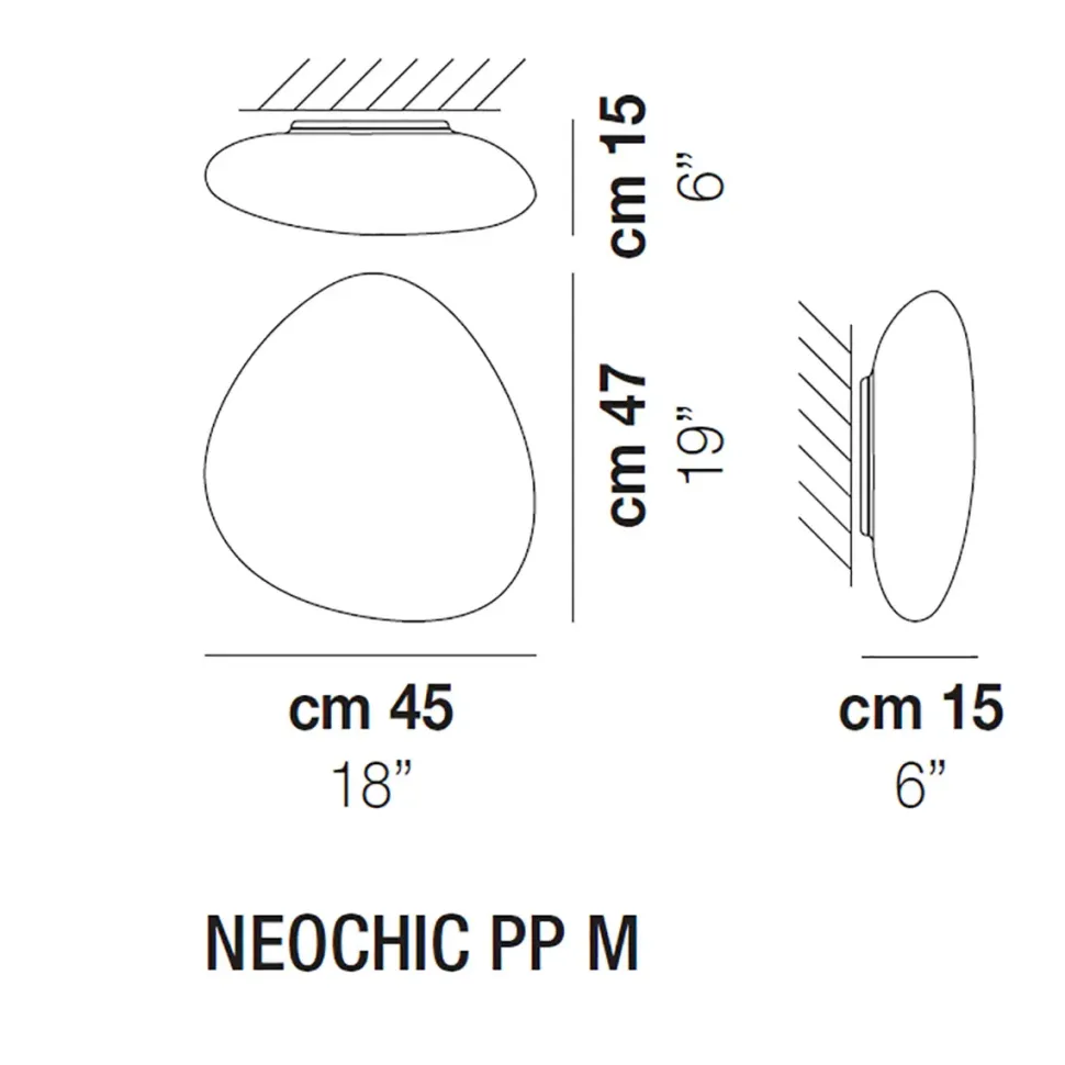 Neochic PPM della vetreria Vistosi è una plafoniera da soffitto o parete in vetro soffiato dalle curve morbide e la superfice levigata, che si incontrano per dare vita ad un modello di estrema semplicità e adattabile a qualsiasi contesto d’arredo. La sua particolare forma è un segno di straordinaria originalità e cura dei dettagli. Lampada da soffitto di grande luminosità diffusa ed omogenea.
