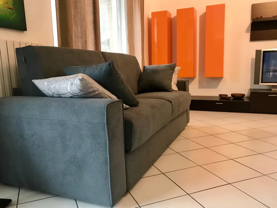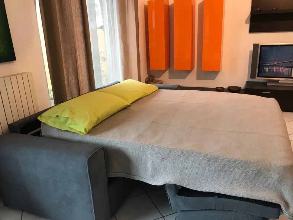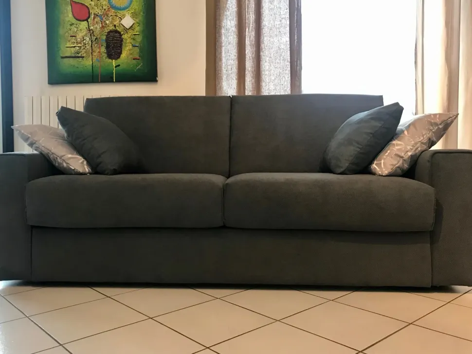 Divano a letto modello Brian tre posti Maxi, con rete elettro-saldata e materasso matrimoniale in misura 160 x 195x H20 cm. All’interno dello schienale è inserito un vano porta guanciali. È possibile scegliere tra tessuti di diversi colori che possono essere anche idrorepellenti, anti-acaro, anti macchia e anallergici. il prezzo si intende per categoria di tessuto A