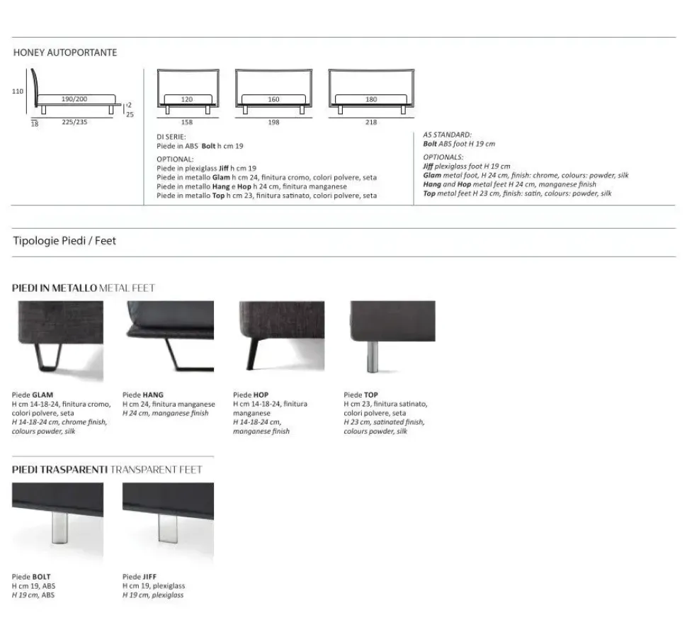 Il prezzo è riferito per un letto nuovo con ortopedica cm 180×190/200, e con rivestimenti a scelta in categoria A, Piedi di serie Bolt.