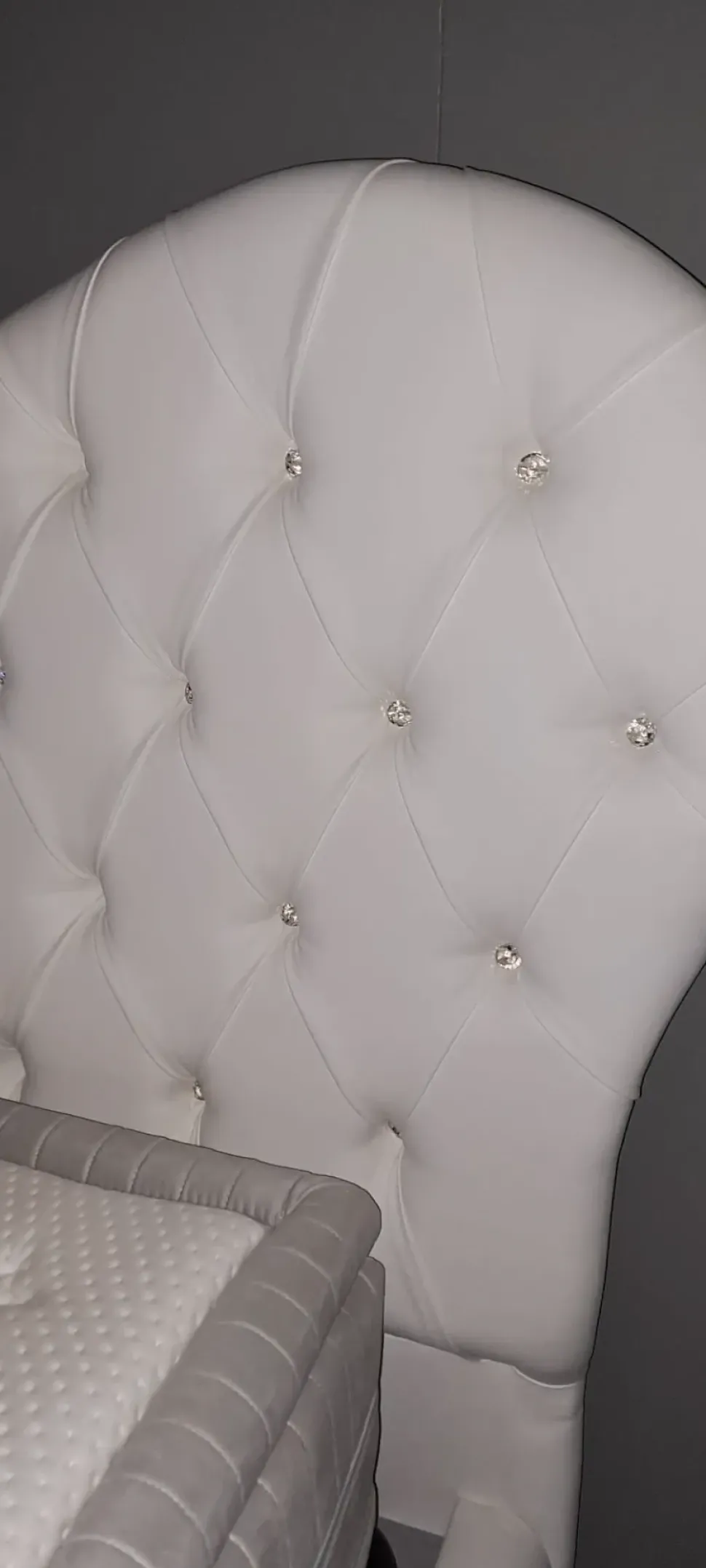 Letto contenitore modello Fiocco , rivestimento in ecopelle con inserti Swarovski sulla testiera.