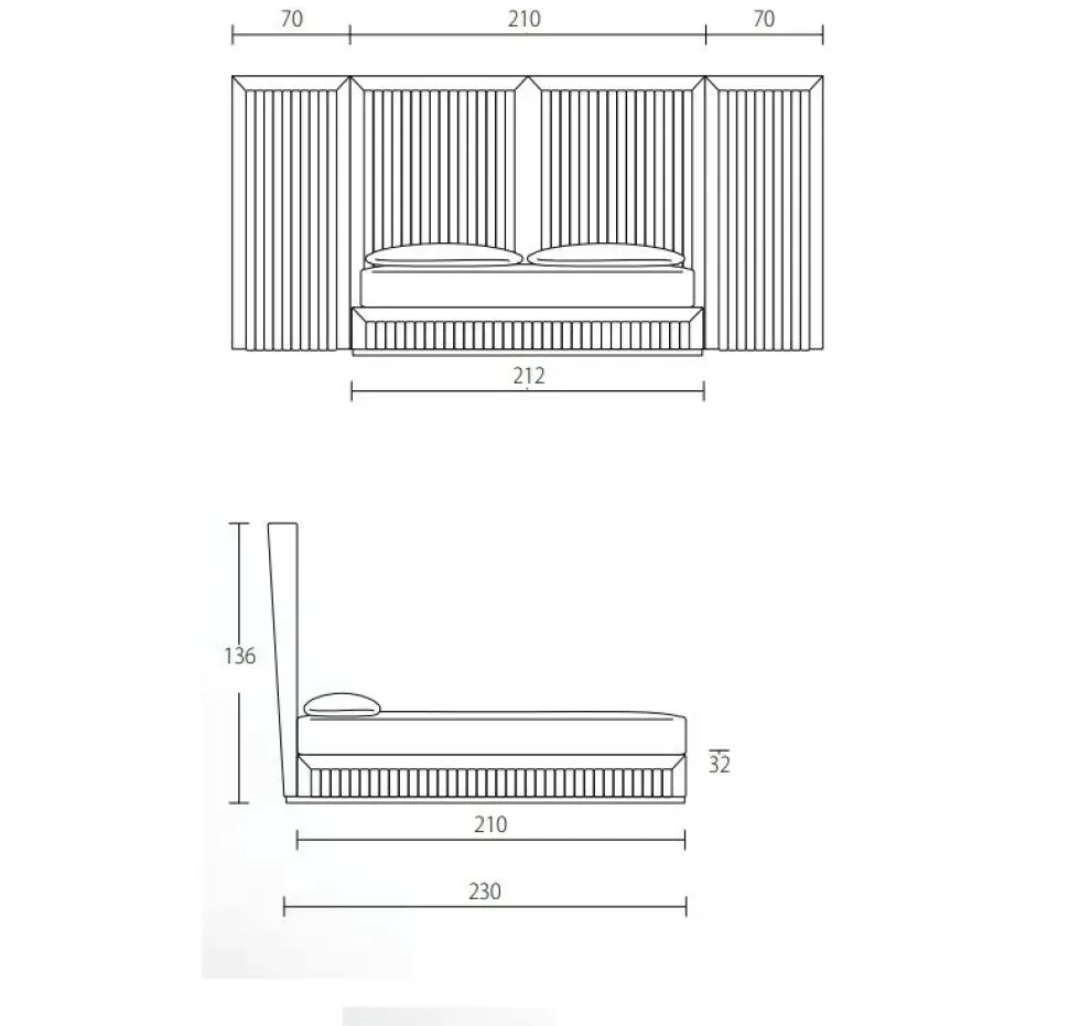 • Headboard in plywood, covered with polyurethane foam.