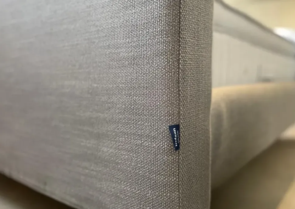 Letto matrimoniale Bolzan mod. Feel con base h.20, rivestimento in tessuto Favignana colore grigio, piede in metallo verniciato nero grafite. Rete in legno a doghe cm. 170 x 200. Prodotto nuovo da esposizione. Dim: l.190 p.221 h.105