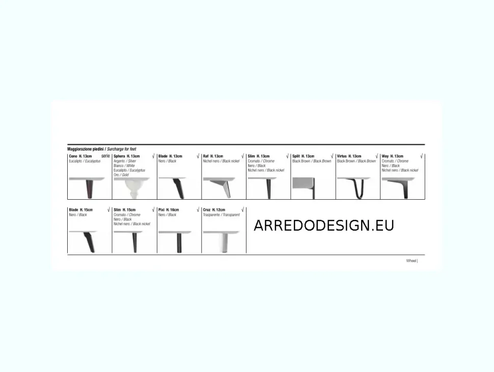 Per rivestimenti di altre categorie, altri tipi di piedini o misura di larghezza diversa, a richiesta forniremo preventivo mantenendo la stessa scontistica.