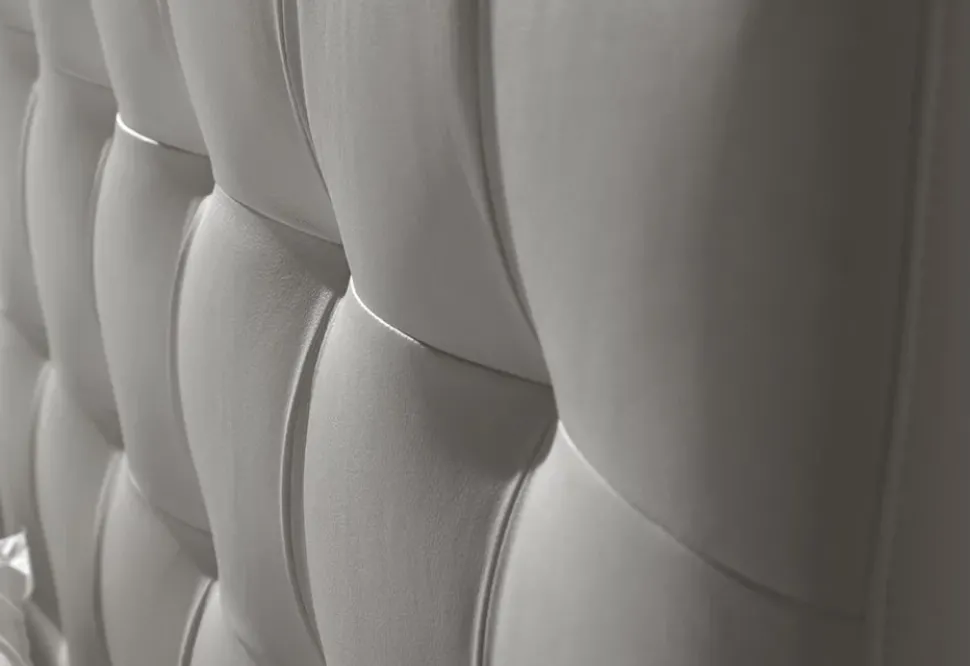 Il rivestimento esterno della testata, non sfoderabile, è disponibile in tessuto o ecopelle.