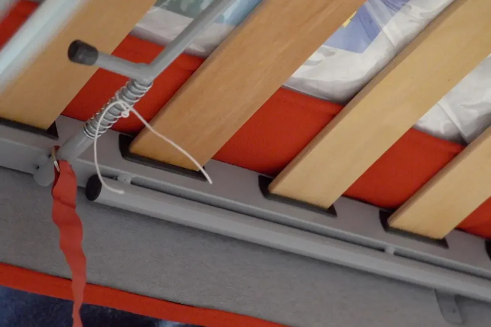 Il divano letto SUITE è prodotto con un meccanismo innovativo e sicuro, basato su tre ganci che permettono la chiusura solo se tutte le sicure sono disinserite. Il letto superiore regge fino a 110 kg di peso, adattandosi perfettamente ad ogni situazione, dai bambini agli adulti.
