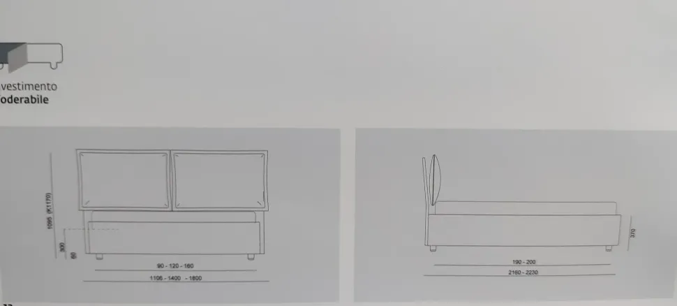 Il letto è disponibile in diverse finiture di colore anche singolo ed una piazza e mezza ed è interamente sfoderabile.