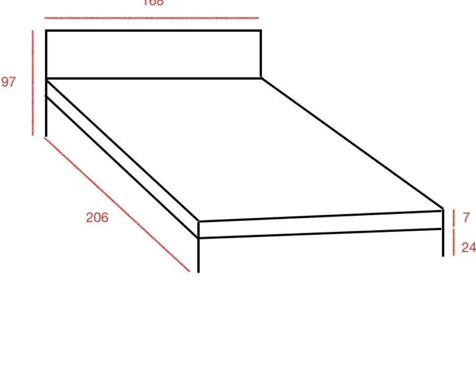 Misura L: 168 x P: 206 x H: 97 (fino a fine testata) con giroletto di altezza 7 cm