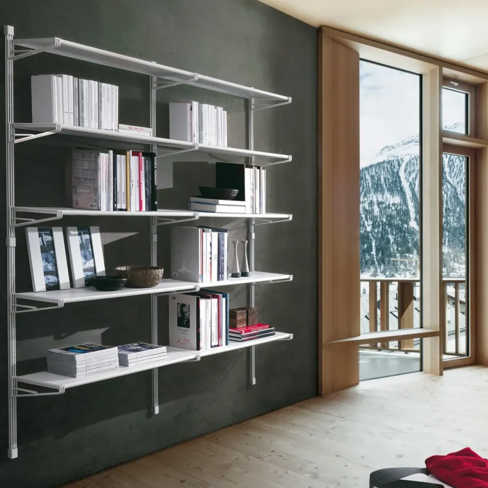 Massimizza lo spazio senza rinunciare allo stile con Socrate, la libreria a muro firmata Caimi: un opera di design industriale intelligente, pensata per chi cerca leggerezza visiva, robustezza strutturale e sostenibilità autentica. Con i suoi montanti a crociera in tondino d acciaio verniciato e i piedini in tecnopolimero, Socrate si fissa saldamente alla parete offrendo una soluzione elegante per libri, oggetti d arredo, piante o accessori tecnologici.