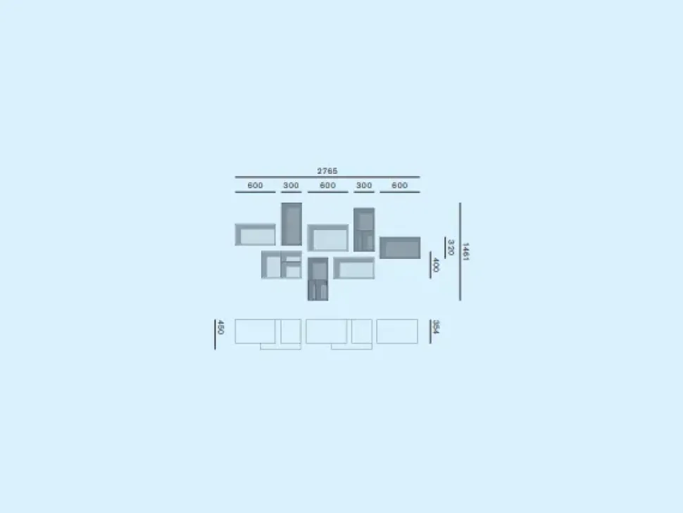 - Questa proposta L5c04 per la zona giorno misura da 251 a 300 cm in larghezza.