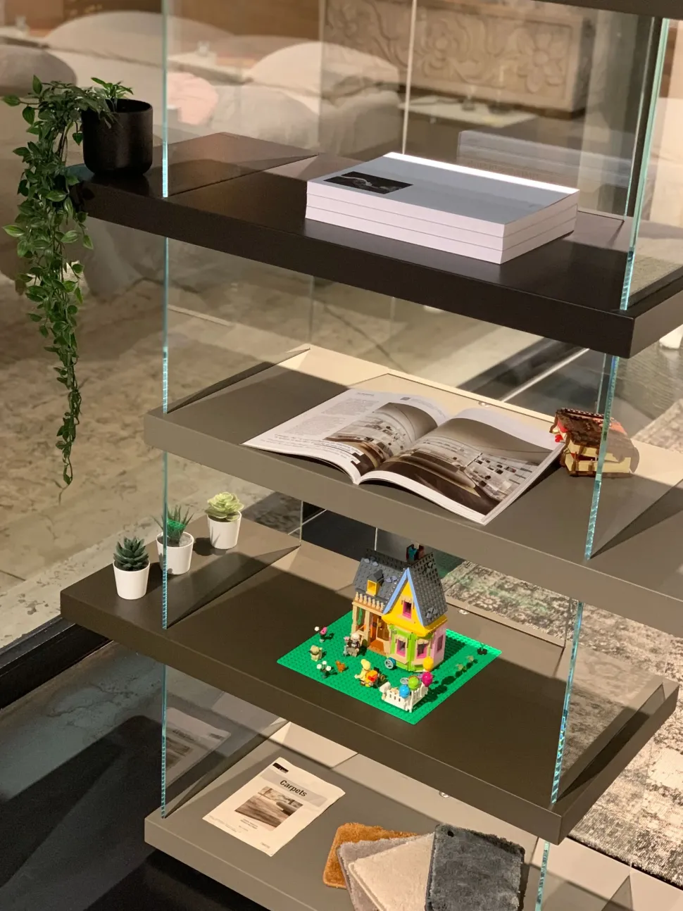 LIBRERIA A TERRA MODELLO AIR DI LAGO IN OFFERTA OUTLET AZIENDA: Lago MODELLO: Air – versione 1462 FINITURA: Laccato opaco e vetro temperato trasparente. Composizione dal basso: 1 Mensola Laccato opaco Havana cm 92×40,6 spessore 5 cm 1 Mensola Laccato opaco Moka cm 92×40,6 spessore 5 cm 1 Mensola Laccato opaco Havana cm 92×40,6 spessore 5 cm 1 Mensola Laccato opaco Castagno cm 92×40,6 spessore 5 cm 1 Mensola Laccato opaco Moka cm 92×40,6 spessore 5 cm 1 Mensola Laccato opaco Havana cm 92×40,6 spessore 5 cm 2 Set Alzata da cm 27,6 vetro trasparente 3 Set Alzata da cm 32,2 vetro trasparente DIMENSIONI TOTALI: L 110,4 H 183,5 P 40,6