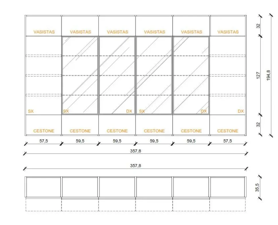 - Questa soluzione Modo per il living misura da 351 a 400 cm in larghezza.